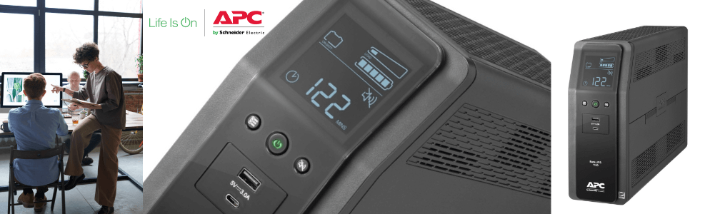 El APC Back UPS Pro proporciona un respaldo premium y protección contra sobretensión. Viene con dos puertos USB de carga (Tipo C + Tipo A) para dispositivos mobiles. Administración Powerchute edición personal. Compatibilidad con equipos que requieren PFC para PCsy y usuarios de videojuegos.